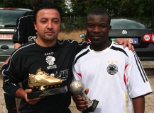 Avant-match, la mêlée, Duel à la bière: Wongs-Chiefs Les Chiefs donnent cours de Bocadance! PERCOLATEUR a cote de moi, je me mets en place pour ecrire le resume du match. HYPOCONDRIAQUE je le place tout de suite que je puisse passer aux choses serieuses. Les chiefs avaient a coeur de faire une grosse prestation et pour cela LE POT BELGE et pharmacie etaient de rigueur afin de faire sortir le HIBOU de la nuit qui sommeillait en nous et nous transformer en PUMAS sauvages de Siberie qui ne demandent qu a s exprimer sur les terres Kappelloises. Le match est parti, les ASTICOS sont aux bout des lignes pour attrapper le vilain poisson Boca. Duels, combinaisons, esprit d equipe, sens tactique sont tous presents, ce qui permet a la ROUE d etre lancee sur notre champs de bataille. Ce qui devait arriver arriva, touche de Stef sur poitrine de Jey qui se retourne et voila le kop peut s exulter car la balle se plombe au fond des filets,rien de plus merite au vu de cette premiere partie de match a sens unique. Boca touche, se remet en selle et tente de revenir dans le match.............BOUM, la LATTE de Kappel est atteinte et donne un avertissement aux Chiefs. A ce moment, la defence se met au boulot et met en place l imparable CATENNACHIO, l'infranchissable MUR et les imprenables boules de Schumchi sont a la carte et Boca n a plus qu a se faire un TOUCHER RECTAL car ils ne toucheront rien d autre et surtout pas nos filets. Badaboum 0-2, 49eme goal de Jey en match officiel pour les chiefs 3, celui-ci venu de nulle part, tir de loin (28,63 m) sous la LATTE, le gardien est battu et n en revient pas de la supperiorite des visites, le Boca est blesse et terrasse par les MAMMOUTHS du territoire qui toucheront encore le poteau via le Tienne sur coup franc manifiquement botte. Mi-temps WINNIE L OURSON fait des changements, ce qui ne plait pas a notre PLEUREUSE DE GAUCHE et fait son show, il n accepte pas son remplacement et je suis content qu il rale cela prouve sa motivation a porter le bleu de la 3. C est reparti, les ingredients sont toujours la, les chiefs ne lacheront rien a part quelques petits os pour les caniches qui se termineront tous a cote, ce qui permet a Alex de prendre sont bain de soleil tranquillement puisque a part ses yeux, il n a rien bouge aujourd hui sous ce super ciel bleu. Crac le poulet Boca est croque et bien grille car c est 3-0 venu de la droite apres une combativite exemplaire affichee par l homme du match (looooolll) qui passe son deffenseur et centre pour Junior qui crucifie le match, celui-ci ne bougera plus jusqu au coup de sifflait final malgre encore quelques occases de Thierry Frank et le Tienne. Je peux vous dire aussi que toutes nos MAMANS sont heureuses d avoir pratique l EPISIOTOMIE a notre naissance vu la grosse prestation fournie et la maniere dont on a sorti le poisson de l eau sur le domaine kappelois. Un seul regret tout de meme, c est que TF1 et SACHA GUITRY ne soient pas venus voir ce match de reference ce samedi apres midi. Voila 3eme mi-temps bien fournie APERO (merci Richard couilles de lion) ESTAFETTES, HACKAS, WONGS (merci a eux pour l ambiance), ZIEVERERS, POSTILLONS, bieres, ballons...sont au menu et consommes par l equipe sans moderation jusqua la fermeture de la buvette, le tout suivi d une bonne frite a Stockel dans le meme esprit. Voila, je range ma plume et vous dis TOUS ENSEMBLE TOUS ENSEMBLE chez les cowboys de COUNTRY qui nous attendent les pistolets charges dans le froc. A nous de sortir la hache de guerre et d aller au combat afin de faire leur scalpe et de le ramener en offrande aux dieux de Kappel. Amis guerriers, je vous donne rdv samedi sur les plaines du colorado de woluwe car la hache est deterree....... A nous la victoire [ Jey ] Junior et Jey, buteurs du jour ... |