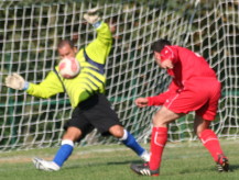 Les matchs se succèdent et ….se ressemblent chez les Chiefs qui viennent de livrer une copie conforme du match de Jeudi sauf qu’à la place de Anthony c’est Filou qui sauf une fois encore les meubles. Germano et David partis en renfort aux Chiefs 2, c’est Albert (le 3è black) qui assuma valablement l’intérim dans les buts et filou en lieu et place de Germano. La motivation était de la partie. Pas de critiques nuisibles, pas de palabres de vieilles femmes, rien que du jeu, du beau jeu : Fouad qui se permet des roulades à la Zizou, Mario qui contrôle et drible dans sa surface, Gary, Filou, Vincent et Fabien qui provoquent et gagnent des duel et surtout Serge qui est présent sur toutes les balles, bref tout le monde était dans son assiette et les visiteurs ne savaient plus à quels Saints se vouer. Et c’est contre toute attente que les malmenés ouvrèrent la marque suite à un hors jeu qui échappe à l’arbitre pourtant exemplaire. Les Chiefs loin de se décourager continuèrent leur harcèlement et logiquement qu’à 20 min de la fin de la partie, sur une puissante frappe-lobe, que Filou (vous vous rappelez ? c’est le mentor d’Anthony le buteur) égalise. 1-1 score final. Le score aurait pu être autrement si Fabien n’a pas rater les 10 occasions qu’il avait ( la faute à la voisine) et surtout si Albert n’a pas fait preuve de professionnalisme. Soulignons également la montée de la 2 et félicitons ses joueurs qui portent haut les couleurs des Chiefs. Philippe, auteur d'une superbe lucarne... |