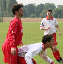 Les Chiefs 3 devaient venir à bout de leurs visiteurs limelettois reduits à 9. Galvaudant tant et plus les occasions en première mi-temps, les kapellois furent assassins en dexième partie de match sous l'impulsion d'un entrejeu impressionnant avec Fred (1 but), Jey (2 buts), Vincent et Max (1 but). L'apport de la french connection est indéniable et de bonne augure pour la suite du championnat. Fred, Jey et Max, buteurs du jour... |