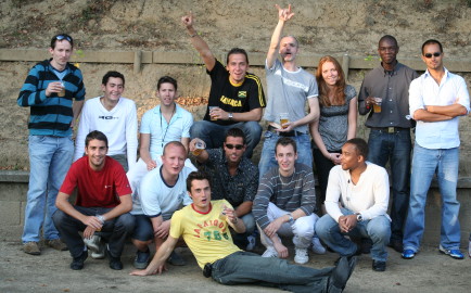 Ce samedi, la3 se depacait chez les leaders de la série. une équipe possédant un goal average impressionant de 19 buts marqués pour 3 encaissés. La rencontre commença par une minute de SILENCE en mémoire de la maman de Franck. Sans PRESSION les chiefs se presentèrent sur le terrain. Tels des OLD BLACKS, le TOBLERONE entre les dents et le FLINGUE dans le short, ils firent danser leurs opposants telles des BALLERINES en tutu ROSE. bien decidés à l'emporter, la 3 forma un BLOC évoluant de gauche a droite, d'AVANT en ARRIERE, ils se preparaient à un nouveau VERDUN bien plus SAIGNANT qu'en 14. La preuve par ARNAUD qui sua sang et EAU sur sa ligne. Un RELACHEMENT sur THROW IN permit a l'équipe adverse d'atténuer le score et revenir a 2-3. Mais s'etait sans compter sur notre nouveau CHABA (Florian) qui enfonça les lignes adverses pour provoquer un penalty. Réduit à 10 suite a un DROP puissant de victor sur un joueur adverse, les tourinnois jetèrent leurs dernieres forces dans la bataille, ils tenterent leur ALL-IN, mais c'est notre joker junior qui les mit définitivement à tapis. Une DOUCHE bien méritée, quelques ECHAUFFEMENTS du coude, et les 28 ballons de BIERE BLONDE se vidèrent d'un seul trait. Au fait, Steph, ta collègue BRUNE est-elle est pour le PSG???? La semaine prochaine nous rencontrons les derniers, ce qui pour moi ne veux rien dire. J'jattends de chacun une concentration et un goût de saignant dans la bouche pour continuer notre belle aventure. UNIS MEME DANS LA DEFAITE.. Ce slogan ne mourra jamais.. schuhmintéanu..... Les buteurs et Ismaël et leur coéquipiers fêtent la victoire ... |